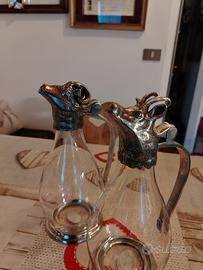 Coppia Caraffe Decanter Art House Cortina inserti con testa di Daino e testa di Ariete Nuovo