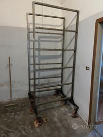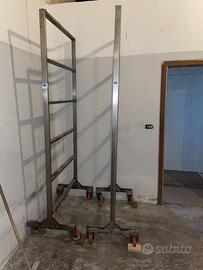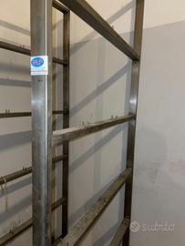 Carrelli in acciaio alimentare con ruote per asciugatura o esposizione salumi. misure circa mt 1,30 x 0,75 x 2,40. Trasporto a carico dell'acquirente.