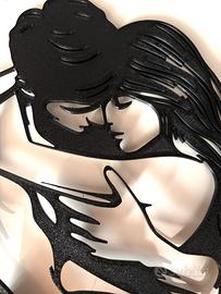 Statuetta in stile Line Art raffigurante una coppia che si abbraccia, simbolo di amore e passione.