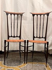 Coppia di sedie Chiavarine di Enzo Rotella - anni 50. Legno di faggio e seduta di paglia intrecciata originale, con marchio sottostante. Vendute a coppia.