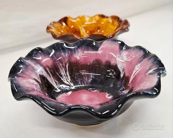 Coppia ciotoline smaltate a colori vivaci, firmate Vallauris, in perfette condizioni. Vendute come in foto.