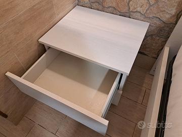 Coppia comodini 2 cassetti larice bianco Dimensioni Comodini: L 54,5 x H 42,5 x P 44,7 cm Cassetti: L 44 x H 9,3 x P 34