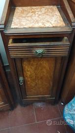 coppia comodini alti vintage inizio 900', altezza 89cm, lunghezza e profondità 38,5cm con ripiani in marmo e interno mensola vetro in buono stato complessivo considerando l'età . 150€