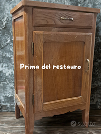 Questa coppia di comodini vintage anni ’60 nasce da un restauro completo e consapevole, pensato per valorizzare la solidità del legno e dare nuova vita a due pezzi unici.