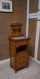 coppia di comodini antichi in legno massello, caratterizzati da design in stile Liberty.