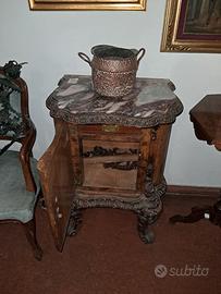 COPPIA COMODINI Antichi marmo Legno Noce mobile