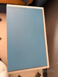 Vendo coppia di comodini uguali in legno artigianali, stile shabby chic, colore azzurro con finiture effetto anticato.