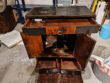 vendesi coppia di ex armadietti per lustrascarpe cinesi dei primi del 900 usati come comodini