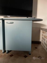 Coppia di comodini in legno color carta da zucchero con una mensola centrale interna Misure: Larghezza tot 54 cm Profonditá 41 cm Altezza 59,5 cm Anta larghezza 42,5 cm Cassetti da abbinare eventualente alla cassettiera grande dello stesso colore