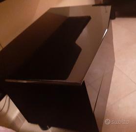 Coppia comodini nero laccato lucido/2 cassetti/base superiore pentagonale