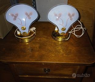 coppia di comodini e relative abat jour d'epoca. sui comodini era stato fatto un restauro conservato. le abat jour sono da aggiornare con l'impianto elettrico.