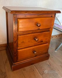 Vendo coppia comodini di legno massello (pino). Condizioni perfette. Possibilità di verniciarli previo un minimo di carteggio. Misure: L: 50 H: 62 P: 35