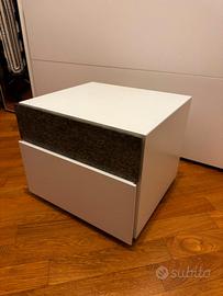 Vendo comodini moderni in bianco con dettagli grigio effetto pietra, dal design elegante e facilmente abbinabile a qualsiasi arredamento.