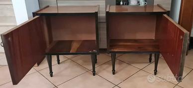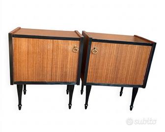 Coppia Comodini Mid-Century con finiture Nere Handpainted.