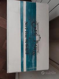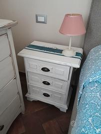 Coppia di comodini in stile Shabby Chic. Usato in buono stato, colore bianco e decoro azzurro. misure 53x32 h 63cm.