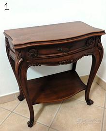 Coppia di comodini in legno stile classico/vintage, ideali per camera da letto o arredamento tradizionale.