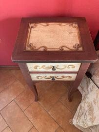 Vendo coppia di comodini in stile Provenzale, caratterizzati da un design coordinato ma con silhouette differenti, perfetti per dare un tocco di originalità e calore alla camera da letto.