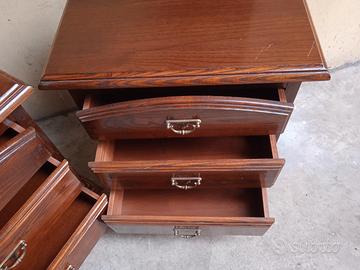 vendo coppia di comodini in vero legno con 3 cassetti e piedini da appoggio in buone condizioni come visibile da foto visibile a Torino ritiro sul posto nn effettuo spedizione 30,00 alla coppia