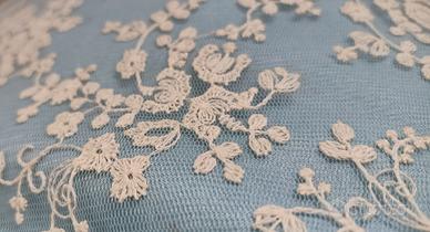 con rispettivi corpicuscini a tema floreali in rilievo, non stampati. Il primo azzurro, il secondo verdino. L'altra metà invece è un beige neutro