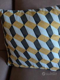 Vendo bellissima coppia di cuscini originali Maisons du Monde, misura 40x40 cm. Il set è composto da: 1 cuscino con fantasia geometrica 3D (toni ocra, grigio e bianco). 1 cuscino coordinato color ocra in morbido tessuto effetto scamosciato/vellutino. I cuscini sono completi di imbottitura originale (100% poliestere), sono sfoderabili grazie alla pratica zip e lavabili comodamente. Sono in ottime condizioni, usati pochissimo come elementi decorativi sul divano. Caratteristiche: Marca: Maisons du Monde Dimensioni: 40x40 cm Stato: Come nuovi, puliti e pronti all'uso. Perfetti per chi vuole dare un tocco elegante e moderno al proprio salotto senza spendere una fortuna in negozio. se consegna a mano Corsico