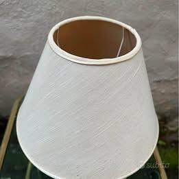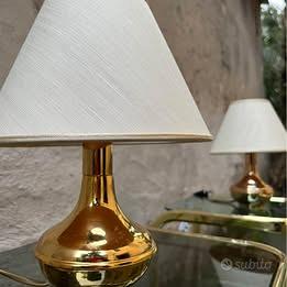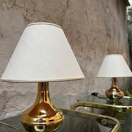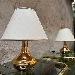 Coppia di lampade da tavolo - abat-jour - oro e paralume ovale in tessuto, design 1970