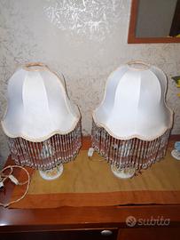 coppia di adat jour anni 50 molto antichi con lumi in capodimonte con rose in rilievo con un po di segni di usura ,paralumi in tessuto e frangia in vetro murano rosa tutte integre le frange sono funzionanti