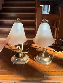 Vendo coppia di abat-jour vintage, abbinate, con struttura in metallo e paralumi in vetro satinato dalla forma elegante.