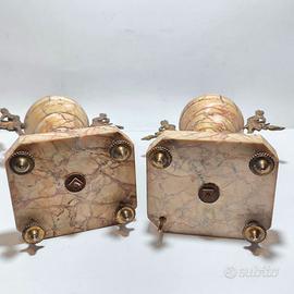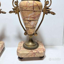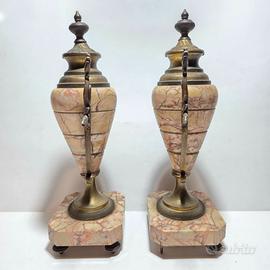 Coppia Di Antiche Cassolette In Bronzo Dorato E Marmo Rosa Primi ‘900.