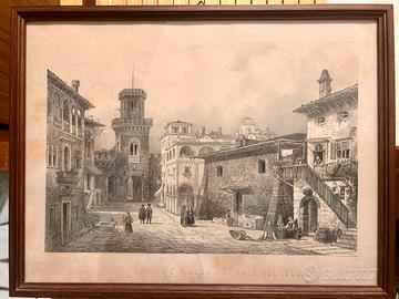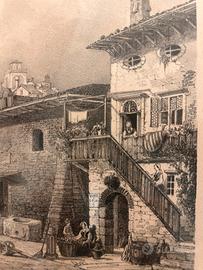 Coppia Di Stampe Antiche Raffigurante Scene Dell'Antica Trieste Cornice In Legno. Dimensioni 32,50 x 25 cm e 26 x 36,5