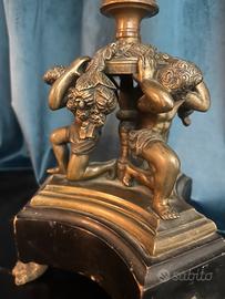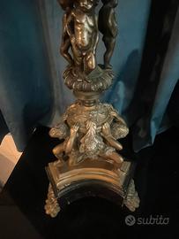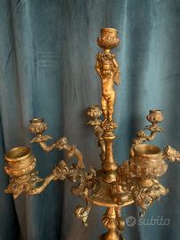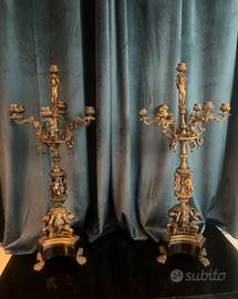 Coppia di antichi candelabri a 6 braccia in bronzo dorato con base in legno ebano nero alti 80cm profondità 20 cm peso 9 kg cadauno periodo 1800