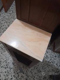 coppia di bei comodini anni 30/40, ristrutturati anti tarlo colore naturale noce scuro altezza fino al piano 78 cm,per intero h 113 cm, prof. 32 Larg 40. top in marmo misto giallo/rosa