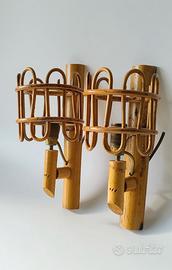 Bellissima coppia di applique a forma di lanterna, realizzate in rattan e bambù.