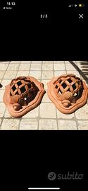Coppia di applique in terracotta adatta per interni ed esterni , in perfette condizioni, come nuove. Misure: cm. 33 di lunghezza/altezza e cm. 30 di larghezza massima.