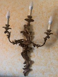 Coppia Applique da parete a 3 luci in legno dorato in stile rococò. Perfettamente funzionanti. Altezza circa 60 cm Larghezza circa 50 cm Ritiro zona Pavia