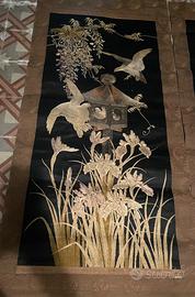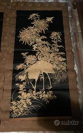 Coppia di arazzi in seta ricamati a mano Ottimo stato