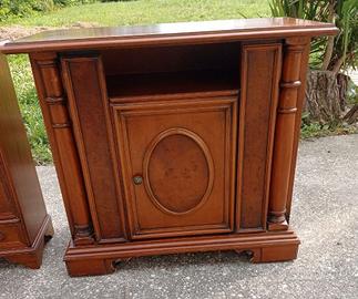 Vendo una coppia di armadietti/comodini in legno massello. L’armadietto più grande ha un vano a giorno superiore e un'anta centrale contenitrice ed è facilmente spostabile grazie alle rotelline incorporate. L’armadietto più piccolo ha un'anta inferiore e un cassettino nella parte bassa, oltre a un vano a giorno. I mobili sono in buone condizioni generali, cassetti e ruote funzionanti. MISURE: - Armadietto grande: Altezza 80 cm, Larghezza 85 cm, Profondità 41 cm - Armadietto piccolo: Altezza 78 cm, Larghezza 36,5 cm, Profondità 27 cm Vendibili anche singolarmente. Disponibile per visionare il tutto di persona. Trasporto a carico dell'acquirente.