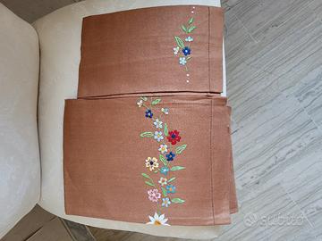 Coppia di asciugamani in lino ricamati a mano