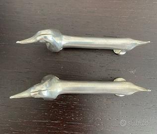 Coppia di bassotti , lunghezza 10 cm , altezza testa 4 cm , pancia 2 cm . placcato argento