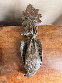 Coppia di battenti antichi in bronzo (pernici). Peso ca 3,650 kg cadauno Misurano in totale ca 34 cm – la pernice ca 23 cm