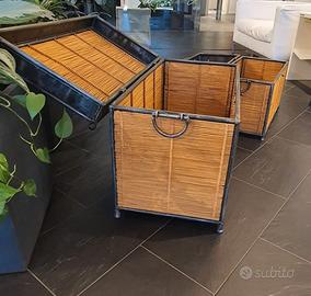 Coppia di Bauli in ferro e rattan naturale - Baule grande circa da cm 80 x p 41 x h 56 - Baule piccolo circa da cm 67 x p 35 x h 46 - PIU' PEZZI DISPONIBILI