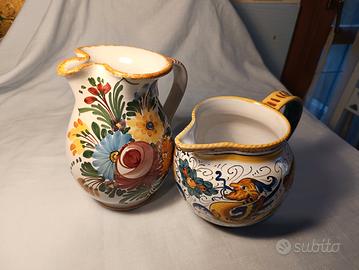 Coppia di brocche in ceramica artistica dipinte a mano – Deruta / Castelli