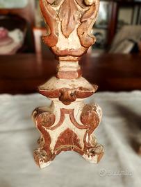 coppia di candelabri da chiesa in legno XVIII secolo. H 52. Contattare Roberto 338 9087106.