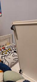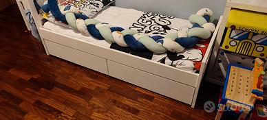 Ai cassetti sono state aggiunte delle rotelle (come in foto), e sono stati utilizzati come sotto letto del modello "Kritter" (letto di Ikea).