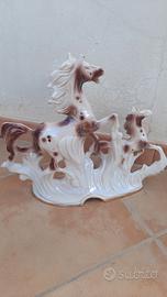 Coppia di cavalli rampanti a galoppo in ceramica dipinti a mano , arte antiche, oggetto da collezione , vintage anni 50