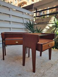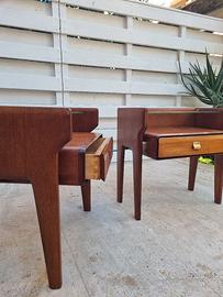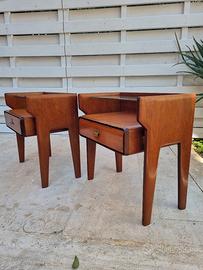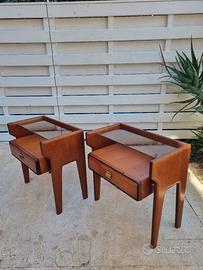 Coppia di comodini anni 60. Teak con rifiniture in ottone. Questa coppia di comodini vintage è un classico esempio di design italiano della metà del secolo (Mid-Century Modern), risalenti principalmente agli anni '50 e '60. Struttura realizzata in legno teak con eleganti finiture in ottone sulle maniglie e sui supporti. Caratterizzati da un ripiano superiore in vetro trasparente che poggia su una struttura a giorno sopra il cassetto. Le linee pulite e le gambe affusolate sono tipiche della manifattura italiana dell'epoca, con alcuni modelli simili attribuiti a designer o produttori come Vittorio Dassi Dimensioni: 55x54x33 ♻️COSÌ È SE VI PIACE ♻️ *Il fascino del passato incontra il design del presente.* 🛣Via Vetulonia 39B Roma quartiere San Giovanni / Appio Latino 📌Dal lunedì alla domenica con appuntamento