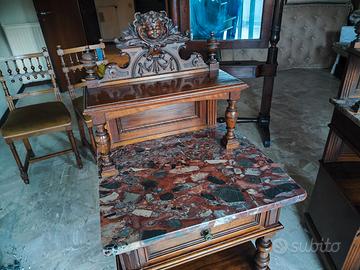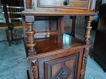 Vendesi coppia di raffinati mobiletti/comodini alti d'epoca in legno massello finemente lavorato. Il mobile, in pieno stile Umbertino, si distingue per la qualità dei materiali e la ricchezza dei dettagli scultorei.