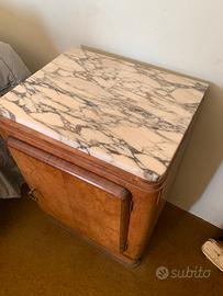 In vendita raffinata coppia di comodini Art Déco originali, Italia settentrionale, anni 1930–1939, provenienti da camera da letto completa d’epoca.
