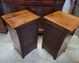 Vendo coppia di comodini stile cappuccino di noce della fine del 1800 originali in buono stato. Se interessa il trittico con il comò a 200 euro in più regalo la specchierina. I comodini misurano 43x36,5 per 74 cm di altezza