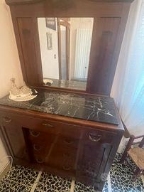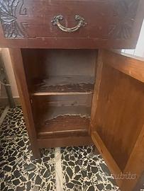 Coppia di comodini legno e marmo h 39 cm larghezza 87 cm profondità 30 cm + cassettiera legno e marmo h 184 cm larghezza 117 cm profondità 50 cm. Venduti anche separatamente