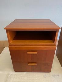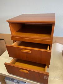 Coppia di comodini di color ciliegio, con cassetti scorrevoli. Senza graffi, segni di usura o scoloriture. Sempre tenuti con cura. Misure: h60, largh,45, prof.41 cm